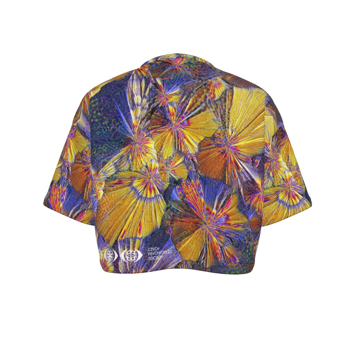 Inspired by the microscopic beauty of ketamine crystals, this cropped tee fuses chemistry and consciousness into a bold wearable statement.