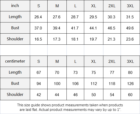 The size chart is manual measured, the margin of error is 3cm
